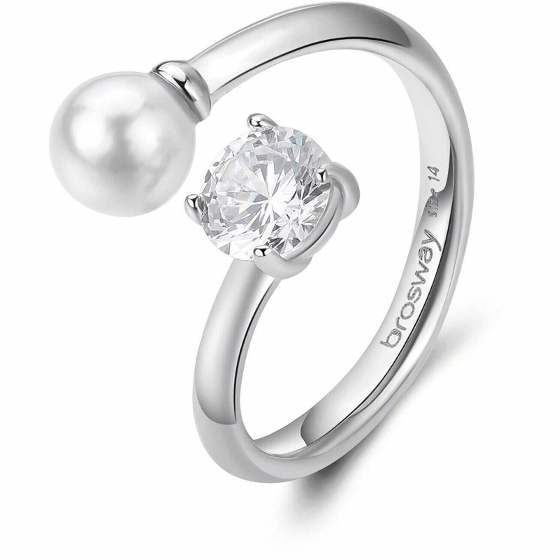 Anello da donna Brosway della collezione Affinity. Anello in acciaio con perla di conchiglia e cubic zirconia. Misura regolabile da 12 a 16. Referenza: BFF190