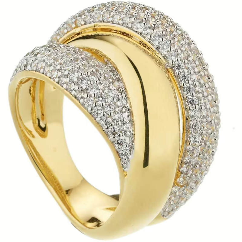 Anello da donna Sovrani Gioielli della collezione Fashion Mood. Anello in ottone dorato con pietre zirconi di colore bianco. La misura dell'anello è 17. Referenza: J9686