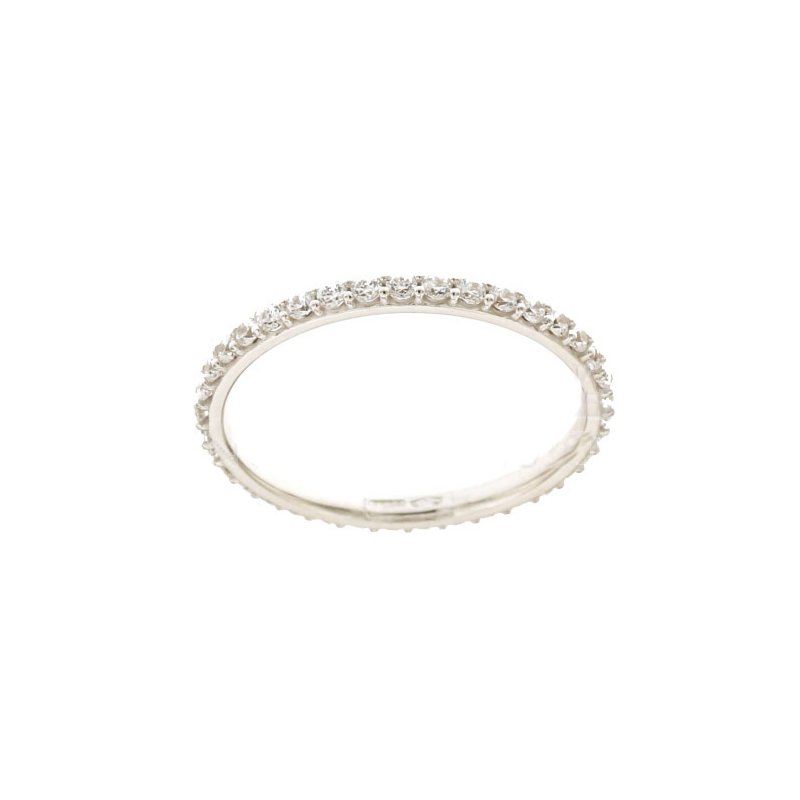 Anello da donna in oro bianco 750/00 (18 kt), modello veretta con pietre zirconi, peso 1,60 grammi. Referenza: 803321721516