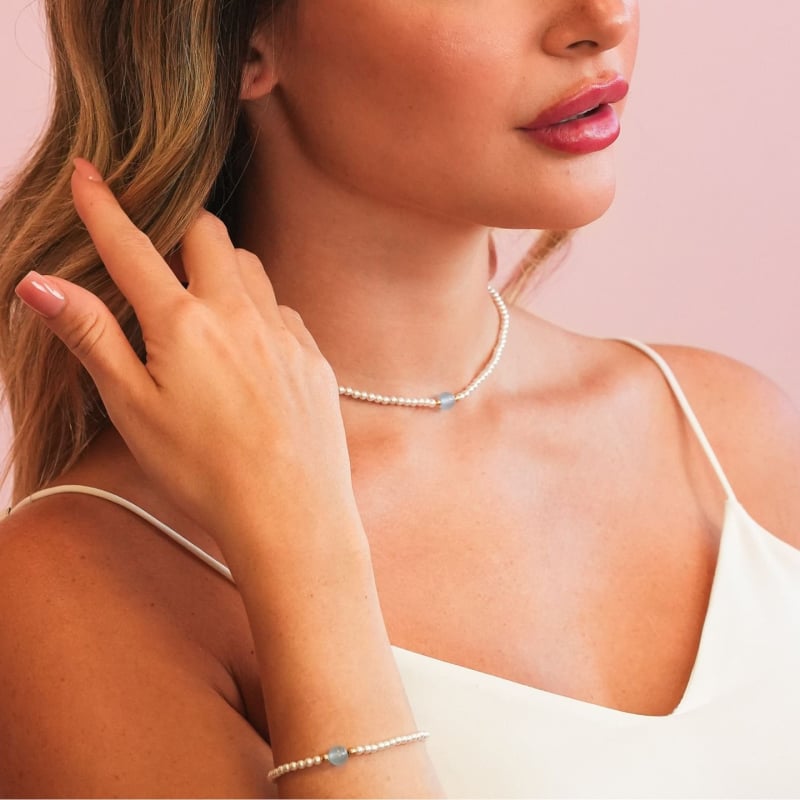 Bracciale da donna Bottega Boccadamo della collezione Perla. Bracciale in argento 925 PVD oro con filo di perle piccole, boules e turchese centrale. Lunghezza regolabile da 16,5 a 20 cm. Referenza: BBR143DA