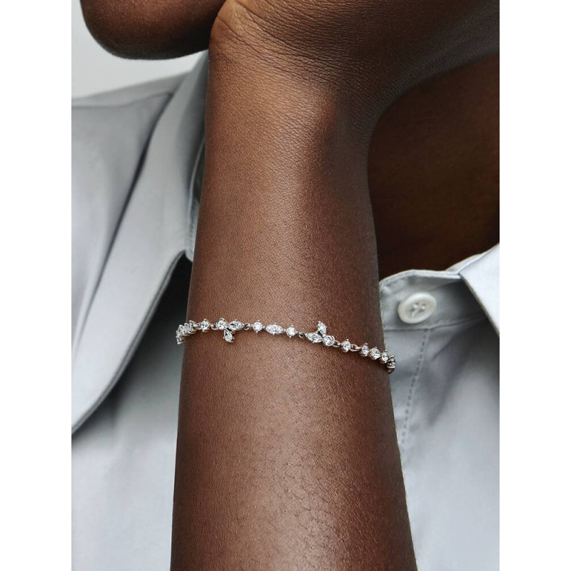 Lasciati ispirare dalle splendide forme della natura con questo Bracciale Herbarium Petali e Pietre Luminose. Ispirato ai fiori e alle foglie pressate, il bracciale in Argento Sterling 925 rifinito a mano è decorato da pietre di zirconia cubica che alternano forme rotonde e marquise lungo metà catena, con due composizioni di pietre rotonde, a marquise e a pera che creano forme ispirate alla natura, fissate da due anelli di giunzione che consentono loro di muoversi naturalmente insieme alla catena.