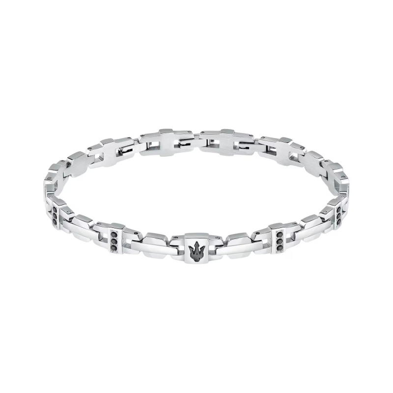 Maserati Iconic JM423AVD17: acciaio e zirconi neri per un bracciale dal fascino deciso, moderno e ricco di personalità. Perfetto da indossare ogni giorno o nelle serate speciali, aggiunge carattere e stile a ogni look.