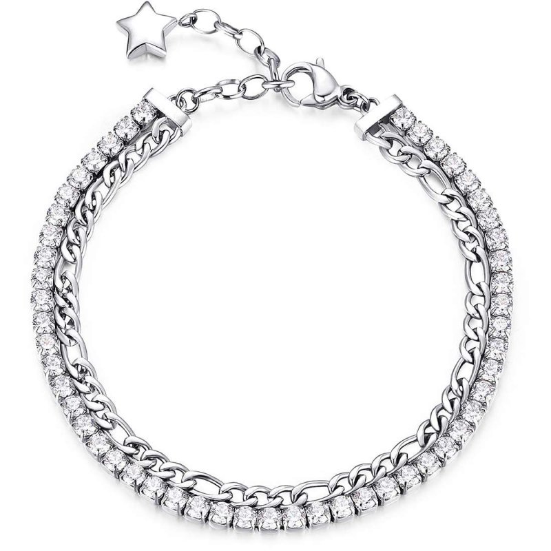 Bracciale Brosway da donna in ottone rodiato della collezione Desideri con doppio filo, e pendente a forma di stella sulla chiusura. Lunghezza bracciale regolabile tramite anellini finali 18,5 cm. Referenza: BEI045