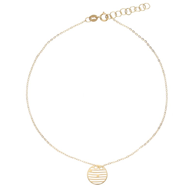 Cavigliera da donna in oro giallo 750 (18 KT). Cavigliera con pendente. Lunghezza regolabile da 22 a 24 cm, chiusura con moschettone. Peso 0,90 grammi. Referenza: GL102276