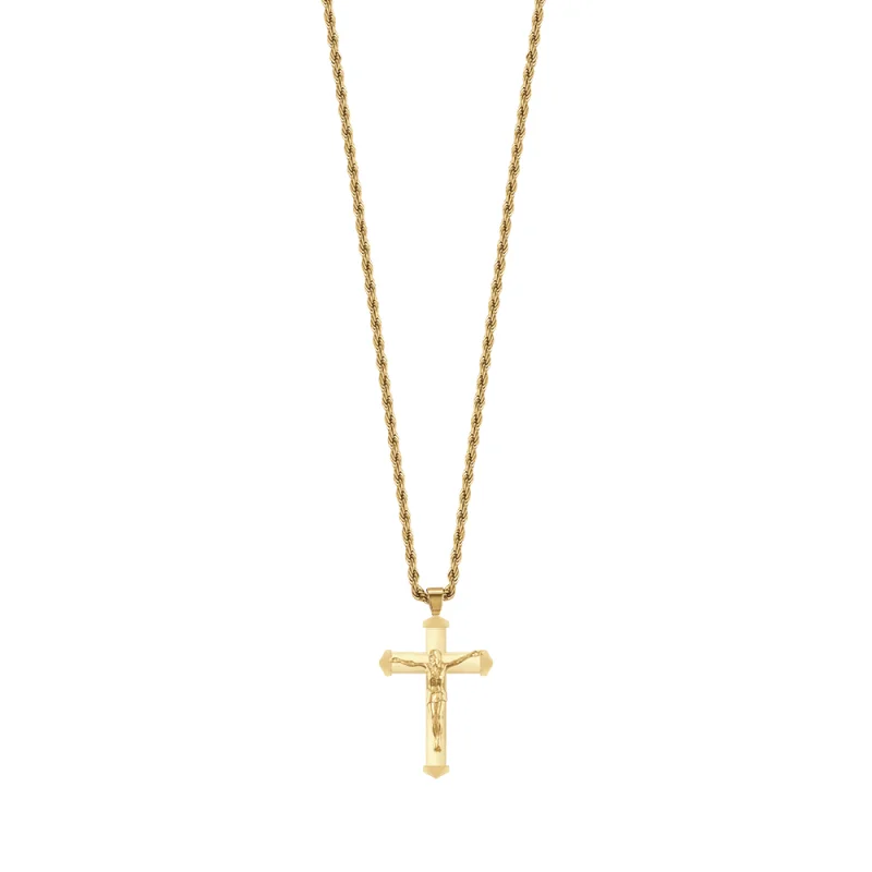 Collana uomo in acciaio IP gold con crocefisso. Lunghezza: 45 + 5 cm. Misura croce: 20 x 30 mm. Esprimi la tua fede con stile. Questa collana da uomo in acciaio IP Gold con crocefisso rappresenta una fede forte e profonda. Porta con te la sicurezza della religione con un look alla moda, moderno ed elegante. Un gioiello perfetto per esprimere te stesso! Referenza: CA466
