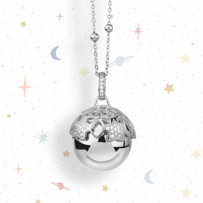 Collana da donna Boccadamo della collezione Mya. Collana chiama angeli con ciondolo sonoro in acciaio e bronzo con cristalli, lunghezza collana 100 cm. Chiusura con moschettone. Referenza: TR_GR38K