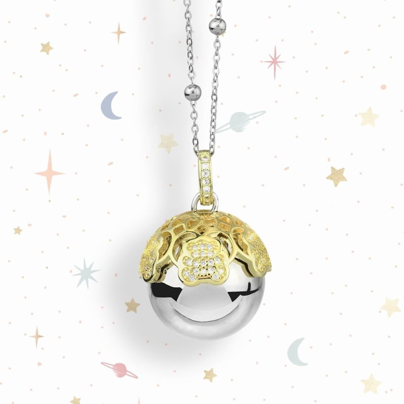 Collana da donna Boccadamo della collezione Mya. Collana chiama angeli con ciondolo sonoro in acciaio e bronzo PVD oro con cristalli, lunghezza collana 100 cm. Chiusura con moschettone. Referenza: TR_GR42K