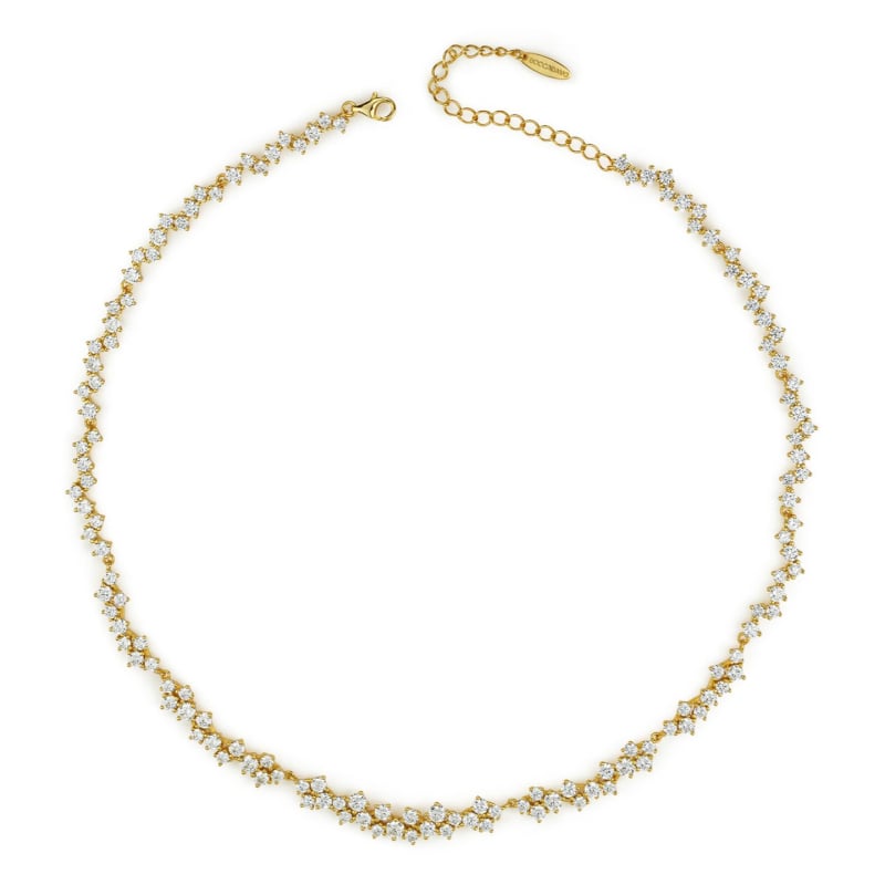 Collana da donna Boccadamo della collezione Sophie. Collana modello tennis in argento 925 PVD oro con pietre zirconi, lunghezza regolabile da 37 a 42,5 cm. Chiusura con moschettone. Referenza: GR922D