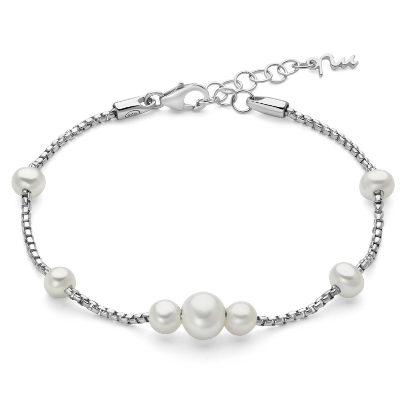 Collana da donna Miluna della collezione Miss Italia Bolle. Collana in argento 925 con 6 perle vere Oriente 5-5,5 mm, 1 perla vera Oriente 7-7,5 mm. La lunghezza della collana è regolabile da 40 a 45 cm. Referenza: PCL6627