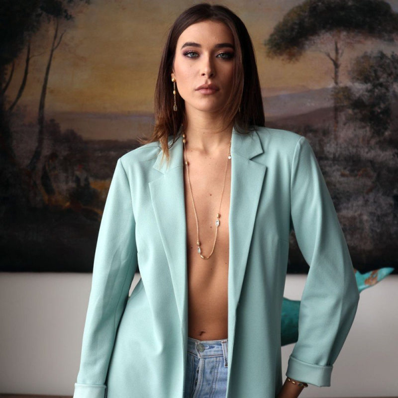 La Collana Sassi Square Mint – Itaca Colors combina superfici materiche e delicate tonalità menta, creando un gioco di luce fresco e raffinato che dona carattere ed eleganza a ogni look.
