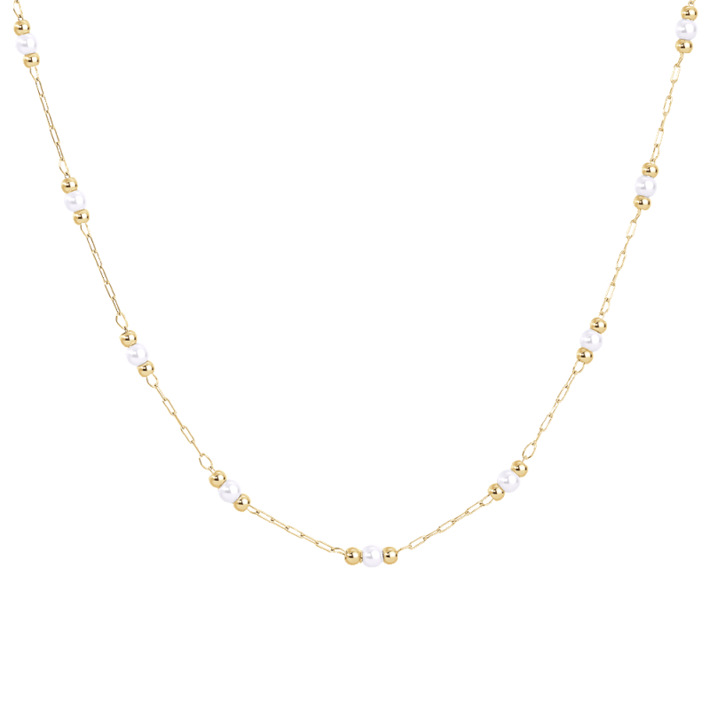 Collana donna in acciaio con perle bianche. Lunghezza: 40 + 5 cm. Diametro perla: 3 mm. Referenza: CK2272