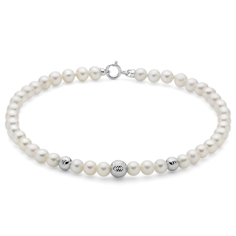 Collana da donna Miluna della collezione Le Perle. Collana con perle vere diametro 4.5/5 mm e 1 perla vera centrale 7,5/8 mm. 3 sfere diamantate e chiusura a moschettone in oro bianco 750 (18 kt). La lunghezza della collana è di 42 cm. Referenza: PCL6749