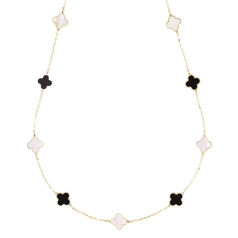 Un gioiello raffinato che unisce fortuna ed eleganza. Questa collana da donna in oro giallo 18 kt, impreziosita da delicati quadrifogli in malachite, sprigiona luce e armonia ad ogni movimento. Un dettaglio prezioso che custodisce un tocco di magia e stile senza tempo.