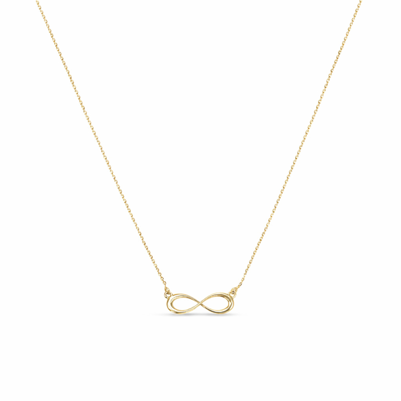 Collana da donna Stroili della collezione Beverly. Collana in oro giallo 375 (9 KT) con centrale a forma di infinito, lunghezza 42 cm. Chiusura con moschettone. Referenza: 1400772