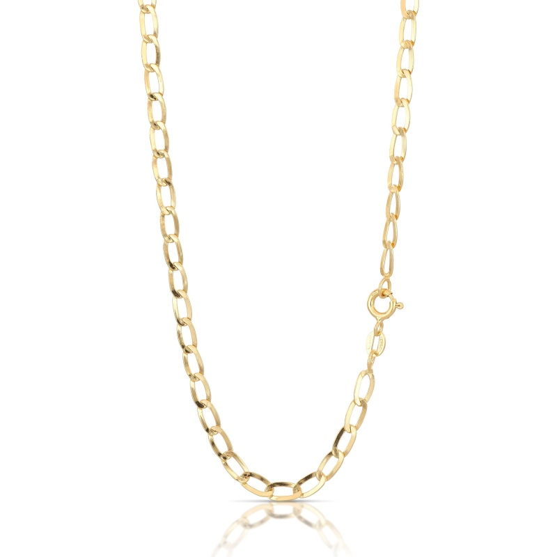 Collana a catena da uomo in oro giallo 18 kt (750/00), maglia grumetta allungata con lavorazione lucida, lunghezza 50 cm, larghezza maglia 0,40 cm, peso 4,70 grammi. Referenza: 803321720781