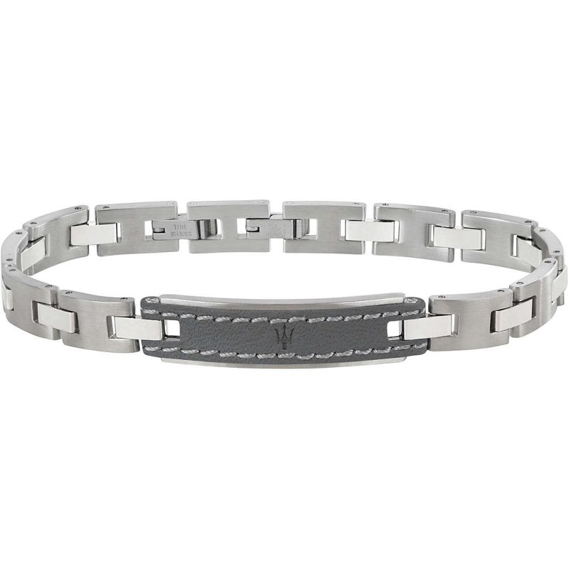 Maserati Herrenarmband aus der Kollektion Maserati J. Armband aus grau satiniertem Stahl und grauem Leder. Die Länge des Armbands beträgt 21,5 cm. Referenz: JM218AMD02