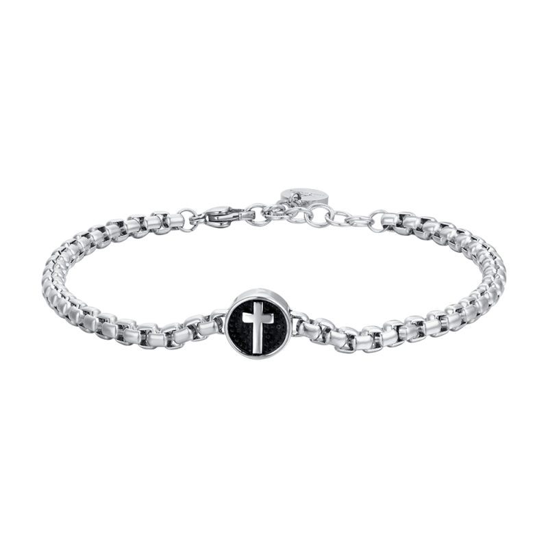 Stahlarmband mit Kreuz und schwarzer Emaille. Länge: 19 + 3 cm. Anhängerdurchmesser: 10 mm. Kettenstärke: 4 mm. Drücken Sie Ihren Glauben mit einem Hauch von Modernität aus, dank unseres Stahlarmbandes mit Kreuz und schwarzer Emaille. Dieses Armband verfügt über ein elegantes Kreuz, das mit schwarzer Emaille eingraviert und veredelt ist und die Robustheit von Stahl mit spiritueller Symbolik verbindet. Referenz: BA1709