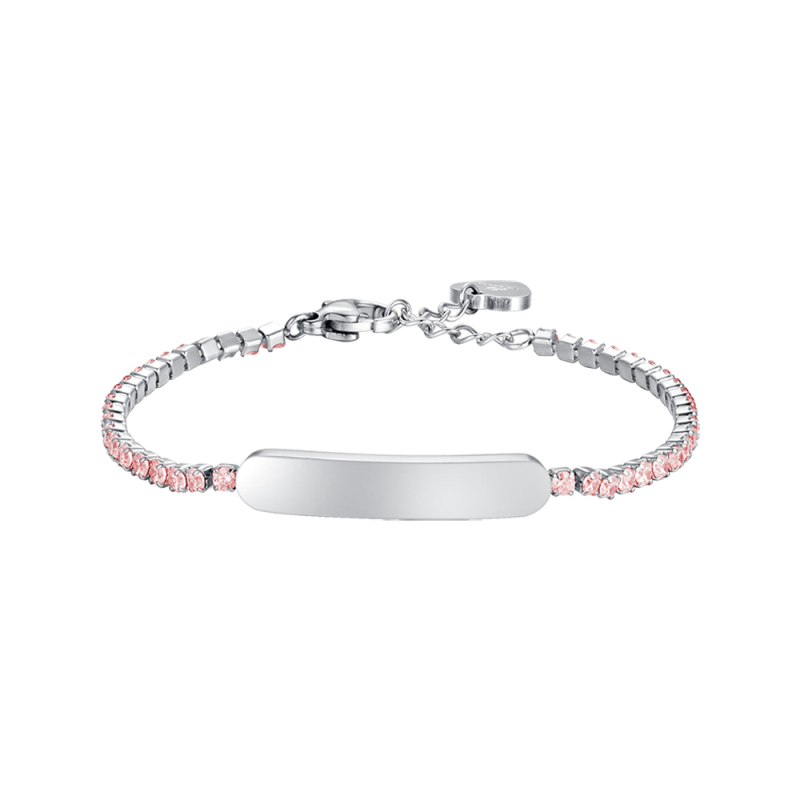 Mädchen-Tennisarmband aus Stahl mit rosa Kristallen und Plättchen. Länge: 14 + 2 cm. Das Tennisarmband dieses kleinen Mädchens ist ideal zum Tragen zu besonderen Anlässen wie Geburtstagen, Partys oder anderen Feiern, kann aber auch jeden Tag getragen werden, um dem Look des kleinen Mädchens einen Hauch von Farbe und Freude zu verleihen. Referenz: JB172