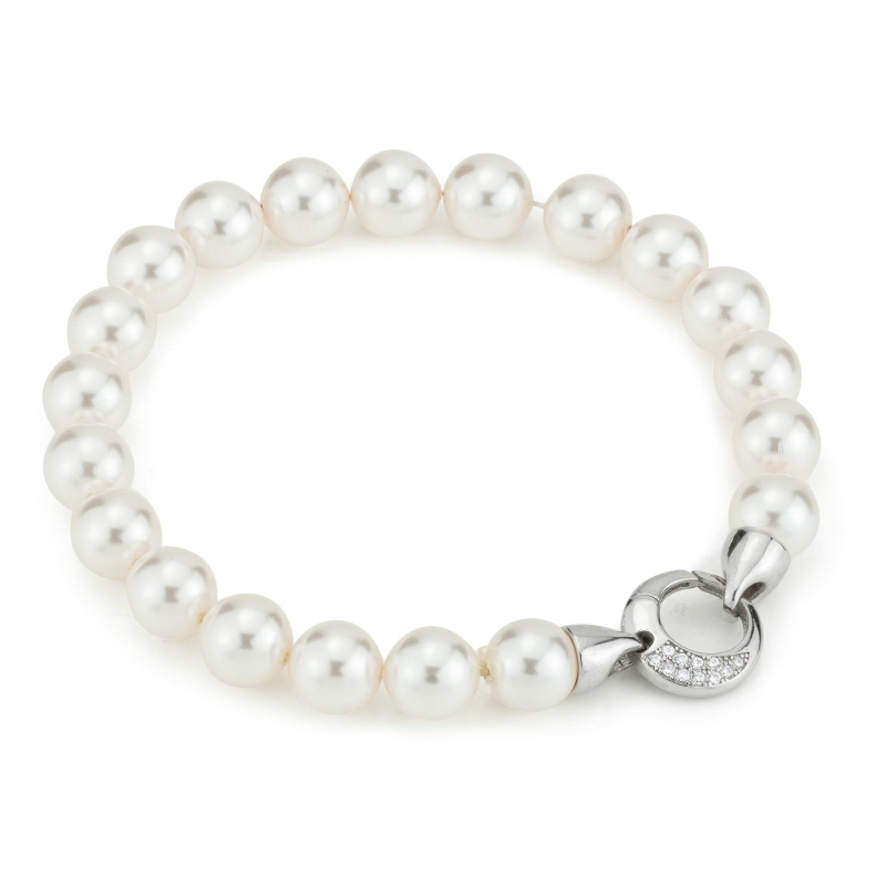 Damenarmband von Bottega Boccadamo aus der Perla-Kollektion. Armband aus 925er Sterlingsilber mit einer Perlenkette und einem Karabinerverschluss mit Zirkonia-Pavé. Länge: 18 cm. Referenz: BBR138S