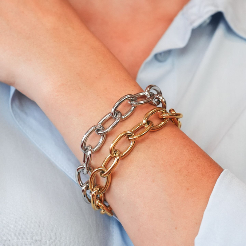 Boccadamo Damenarmband aus der Mya Chain Kollektion. Armband aus goldfarbenem PVD-beschichtetem Stahl. Verstellbare Länge von 17,5 bis 20,5 cm. Artikelnummer: MY_BR68