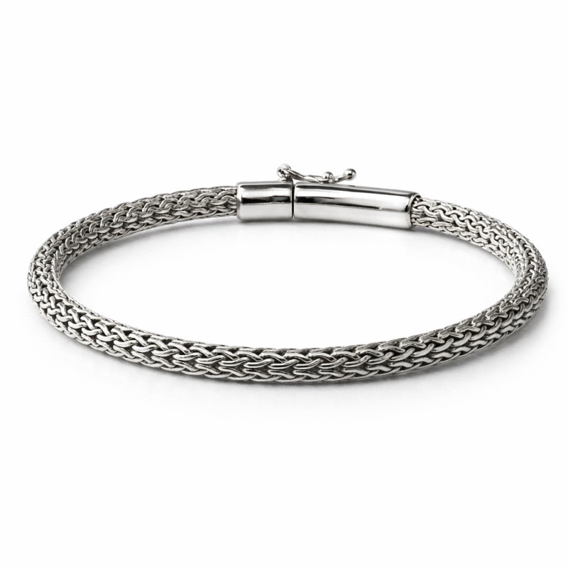 Das Armband ist aus 925er Silber gefertigt und zeichnet sich durch ein kompaktes, regelmäßiges Netzdesign aus, das Glanz und eine edle Textur verleiht. Es eignet sich perfekt, um jedes Outfit aufzuwerten, von lässiger Alltagskleidung bis hin zu eleganteren Anlässen.