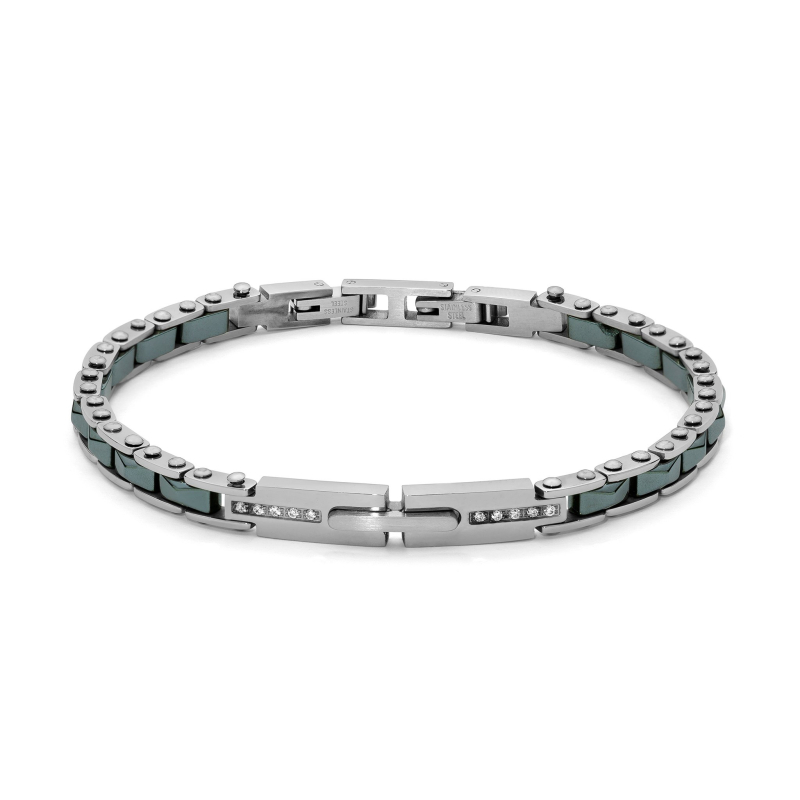 Yukiko Herrenarmband. Stahlarmband mit Zirkonia-Steinen und Keramikeinsätzen. Die Armbandlänge ist von 19 bis 21 cm verstellbar. Referenz: KBRD1834