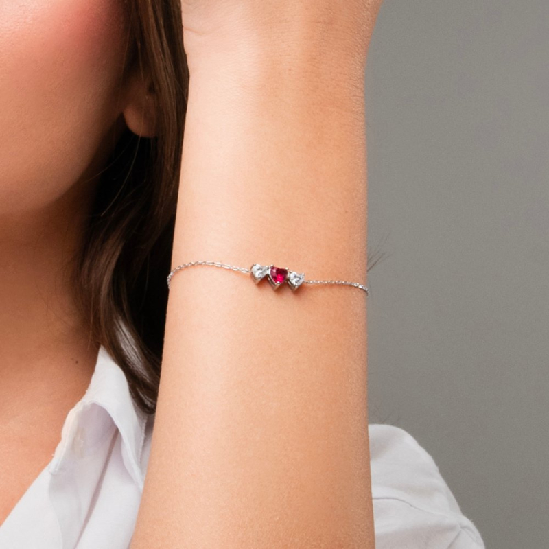 Damenarmband aus Stahl mit Herzen und weißen sowie roten Zirkonia. Länge: 16 + 3 cm. Artikelnummer: BK2949
