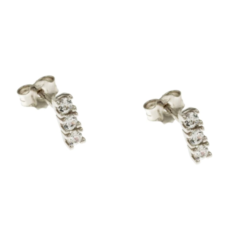 Damenohrringe aus 750 (18 KT) Weißgold. Trilogie-Ohrstecker mit abgestuften Ohrsteckern. Länge: 0,85 cm, Schmetterlingsschraubverschluss. Die Ohrringe wiegen 1,30 Gramm. Referenz: GL102221