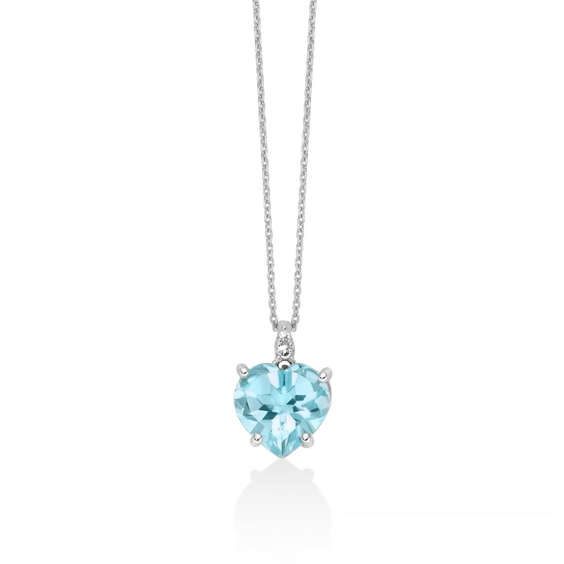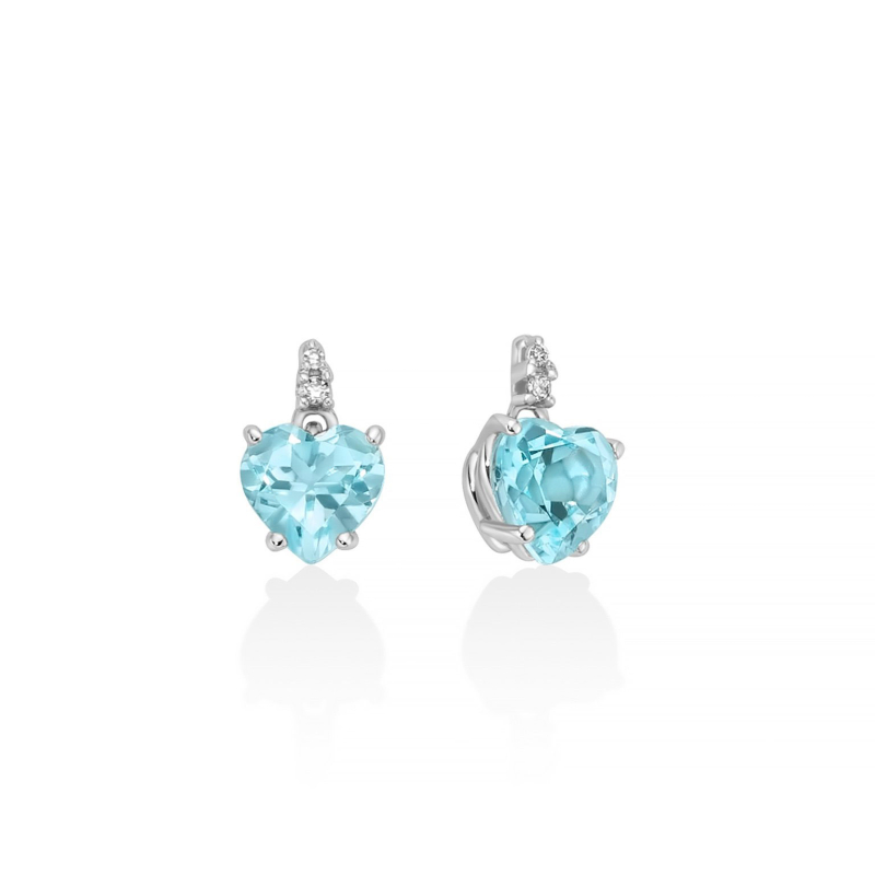 Miluna Damenohrringe aus der Gemma del Cielo Kollektion. Herzförmige Ohrstecker aus 9-karätigem (375) Weißgold mit zwei natürlichen Topasen und vier natürlichen Diamanten. Schraubverschluss. Referenz: ERD2815X