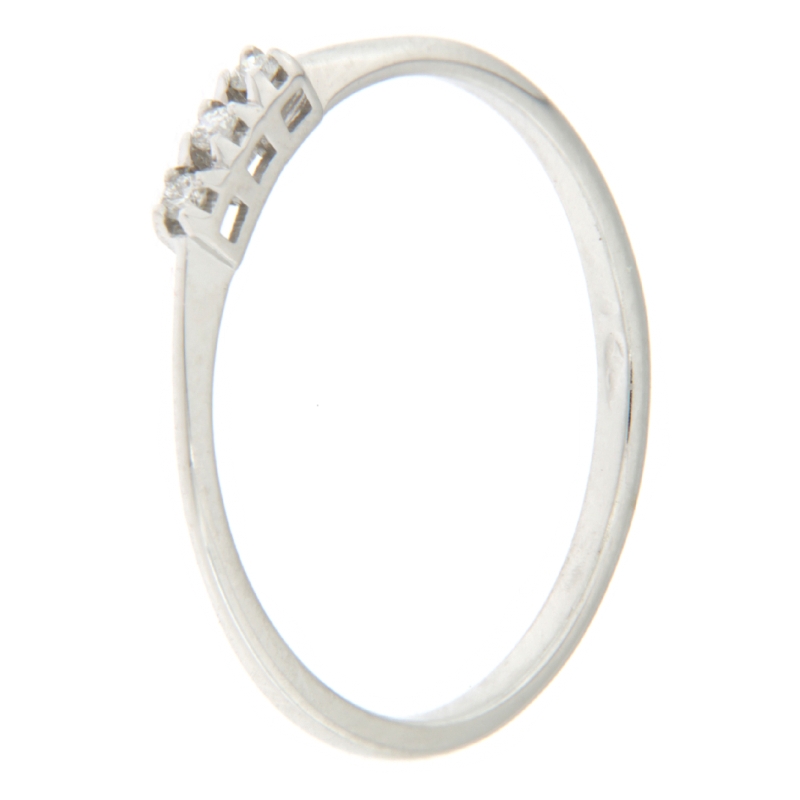 Trilogie-Damenring Promesse Gioielli aus 750/00 Weißgold mit Diamanten. Der Ring hat 3 Diamanten mit einem Gesamtkaratgewicht von 0,03 ct in der Farbe F / G. Die Ringgröße ist 13. Referenz: TRYPIR03