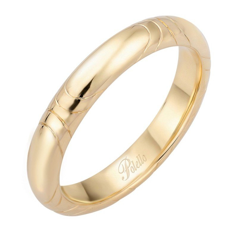 Polello-Ehering aus der Kollektion Anniversario 50. Ehering aus 18-karätigem (750) Gelbgold mit 0,20 ct natürlichen Diamanten, 4 mm breit. Referenz: 3452DG