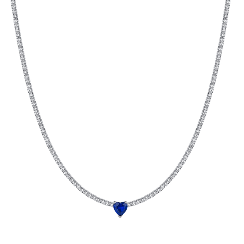 Damen-Tennishalskette aus Stahl mit weißen Kristallen und blauem Kristallherz. Länge: 35 + 7 cm. Die Damen-Tennishalskette aus Stahl mit weißen Kristallen und blauem Kristallherz ist ein faszinierendes und zartes Schmuckstück, das mit Sicherheit die Aufmerksamkeit der Trägerin und derjenigen, die es betrachten, auf sich ziehen wird. Diese Halskette besteht aus Stahl, einem widerstandsfähigen und langlebigen Material, das dafür sorgt, dass das Schmuckstück lange getragen werden kann, ohne seinen Glanz zu verlieren. Referenz: CK1941