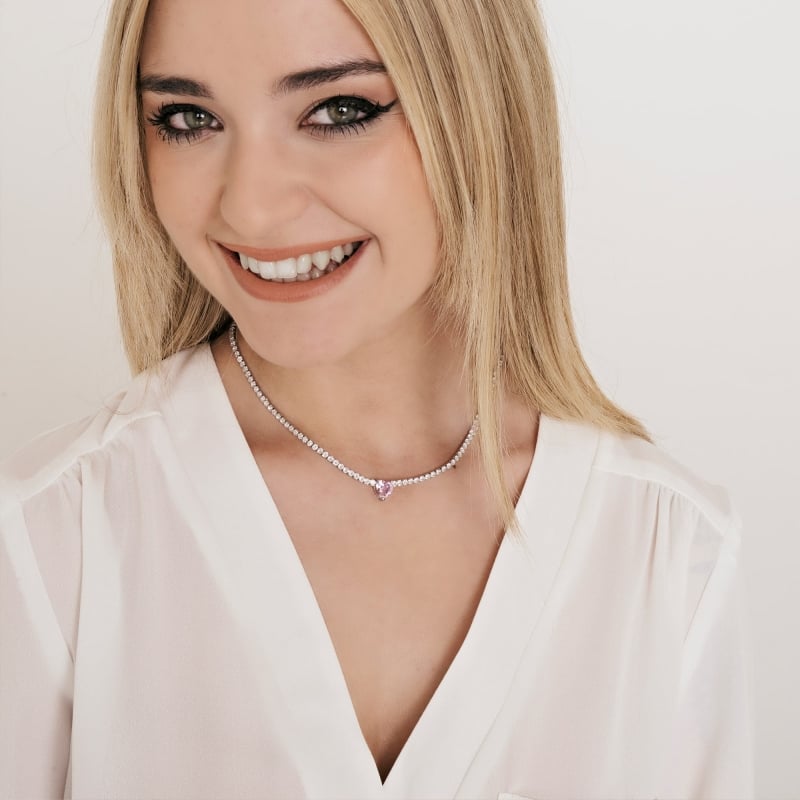 Stahlhalskette mit weißen Kristallen. Zentraler weißer herzförmiger Kristall. Länge: 35 + 7 cm. Kristalldurchmesser: 2,5 mm. Ein Traum wird wahr! Diese mit weißen Kristallen und einem wunderschönen Kristallherz besetzte Damenhalskette aus Stahl ist ein einzigartiges und exklusives Schmuckstück. Dieses Geschenk wird Ihrer Party Liebe und Einzigartigkeit verleihen! Referenz: CK1704