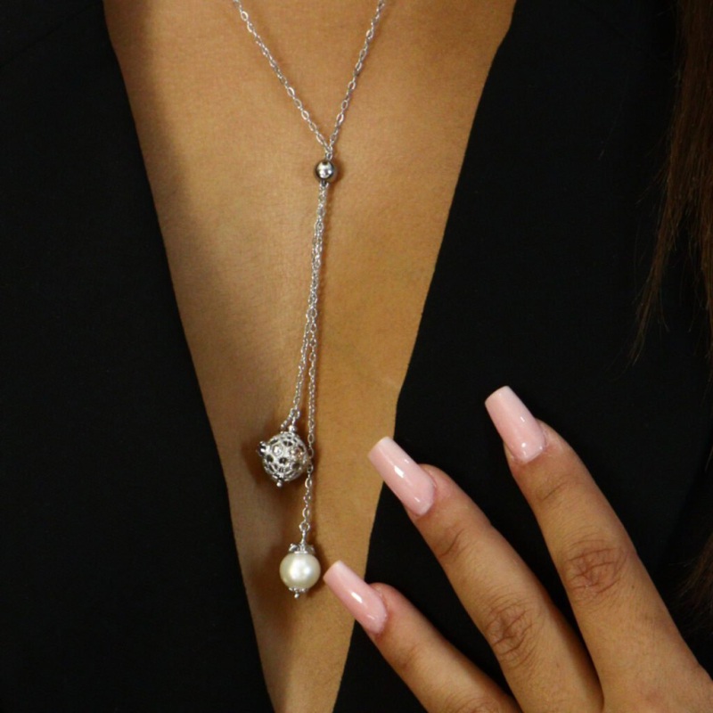 Halskette von Michele Affidato aus der Kollektion Le Perle. Halskette aus 925er Sterlingsilber mit Kristallen und Perlen. Referenznummer: CL-GP-000520