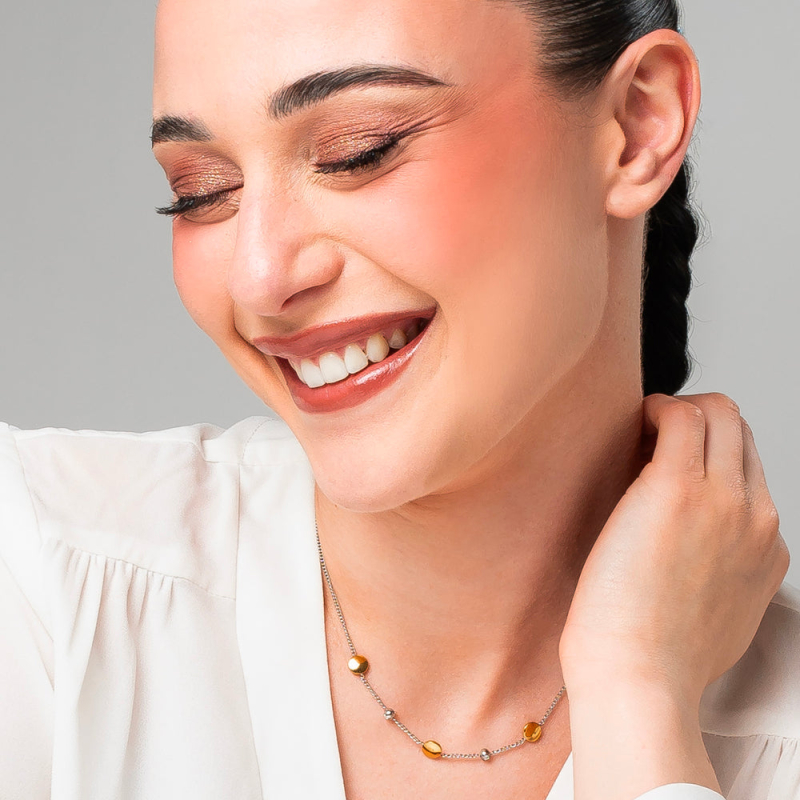 Damenkette von Luca Barra aus Stahl und goldfarbenem PVD-beschichtetem Metall mit weißen Zirkonia. Verstellbare Länge von 40 bis 45 cm. Karabinerverschluss. Referenznummer: CK2285