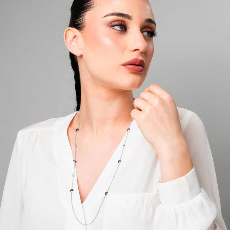 Luca Barra Damenkette aus Stahl mit weißen Zirkonia. Verstellbare Länge von 75 bis 80 cm. Karabinerverschluss. Artikelnummer: CK2284