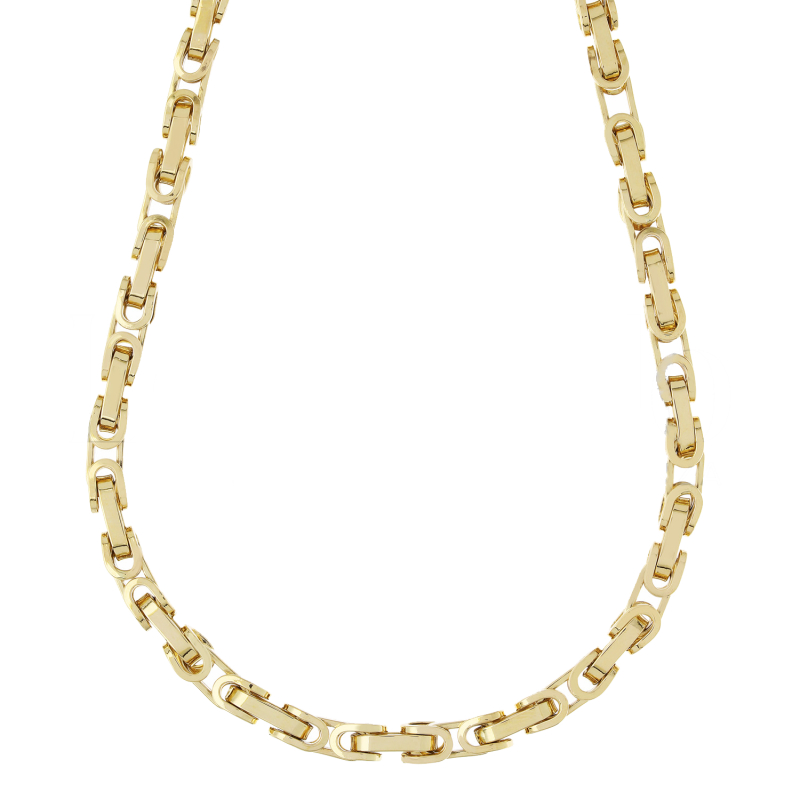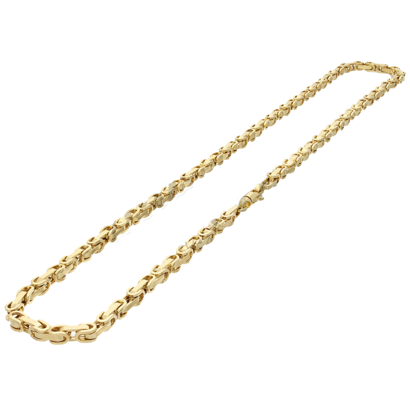 Ein imposantes Schmuckstück mit zeitlosem Charme . Diese Herrenkette aus 18 Karat Gelbgold mit majestätischem byzantinischen Röhrenglied strahlt Stärke , Prestige und Stil aus. Ein kostbares Detail für den Mann, der es liebt, mit Eleganz aufzufallen.