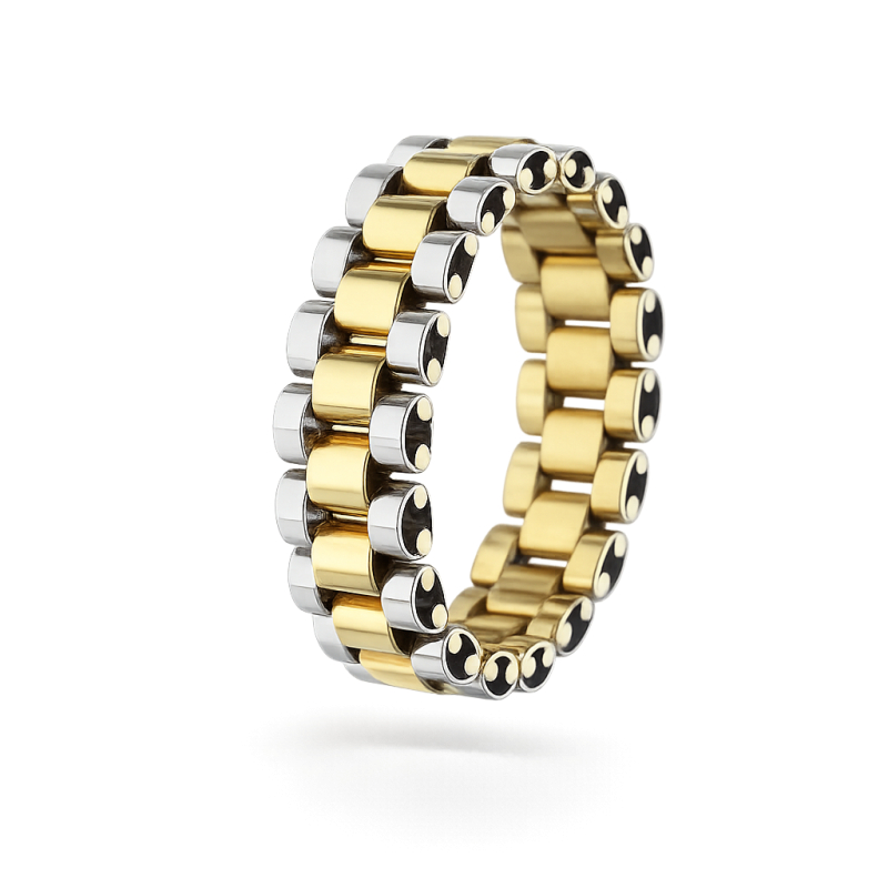 Mit seinem markanten Design verkörpert dieser Ring aus 18-karätigem Weiß- und Gelbgold auf elegante Weise Stärke, Stil und Persönlichkeit. Er eignet sich perfekt für jeden Tag oder als Geschenk und verleiht jedem Look Charakter und eine unverwechselbare Note.