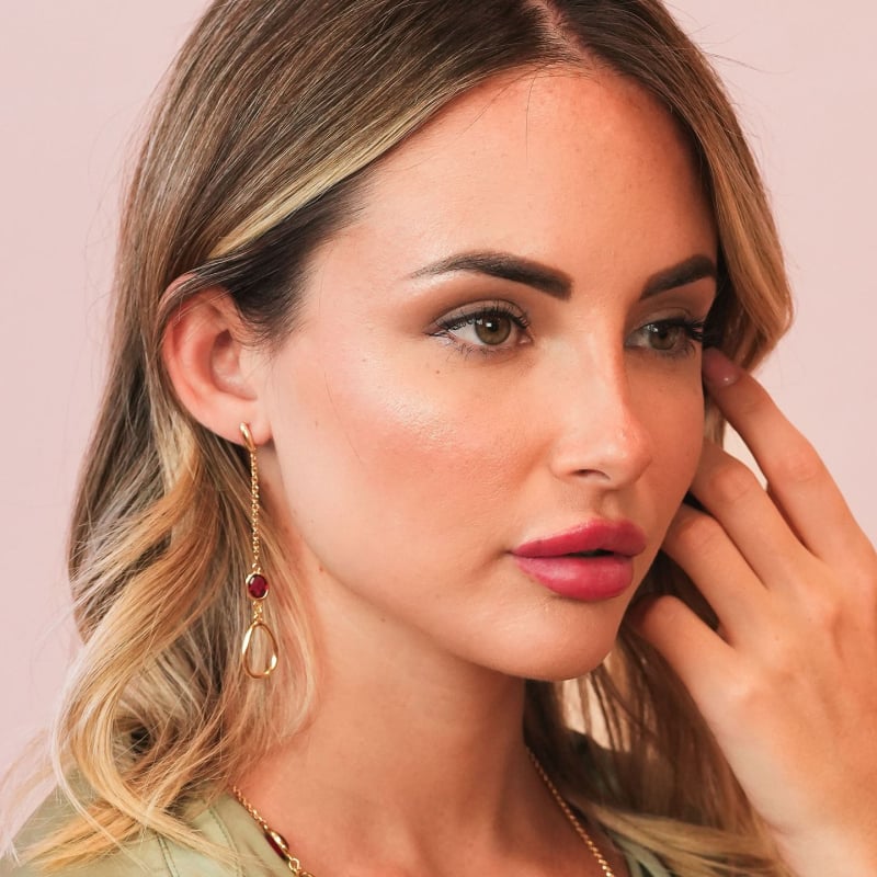 Boccadamo Damenohrringe aus der Crisette-Kollektion. Tropfenohrringe aus vergoldeter Bronze mit roten Kristallen, 8 cm lang. Referenz: XOR763D