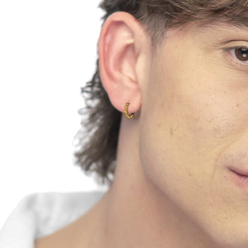 Einzelner Creolen-Ohrring aus Stahl mit Kugeldesign, 1,3 cm Durchmesser, Druckknopfverschluss. Referenz: 33OR0126G