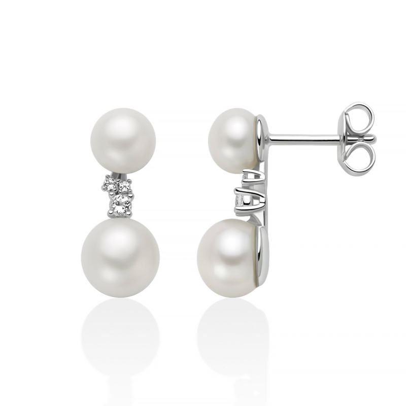 Miluna Andromeda PER2889 : Natürliche Perlen und weiße Topase in 925er Silber verleihen dem Gesicht zarte Eleganz. Perfekt für festliche Anlässe und besondere Abende, aber auch ein kostbares Geschenk, das zu jedem Outfit passt.