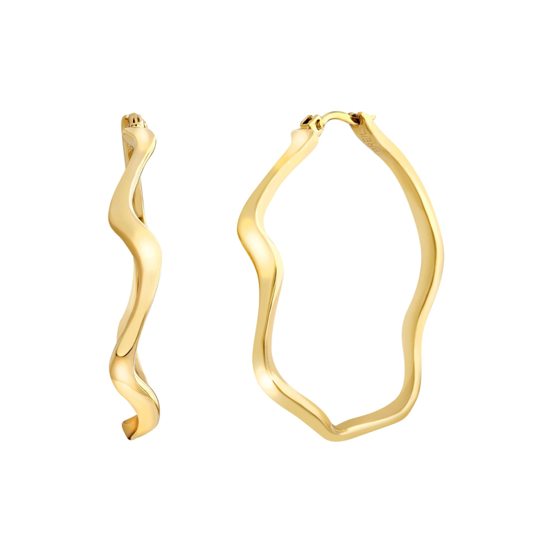Breil Damenohrringe aus der Zig Zag Kollektion. Creolen aus goldfarbenem PVD-beschichtetem Stahl, 4 cm Durchmesser. Bajonettverschluss. Artikelnummer: TJ3910