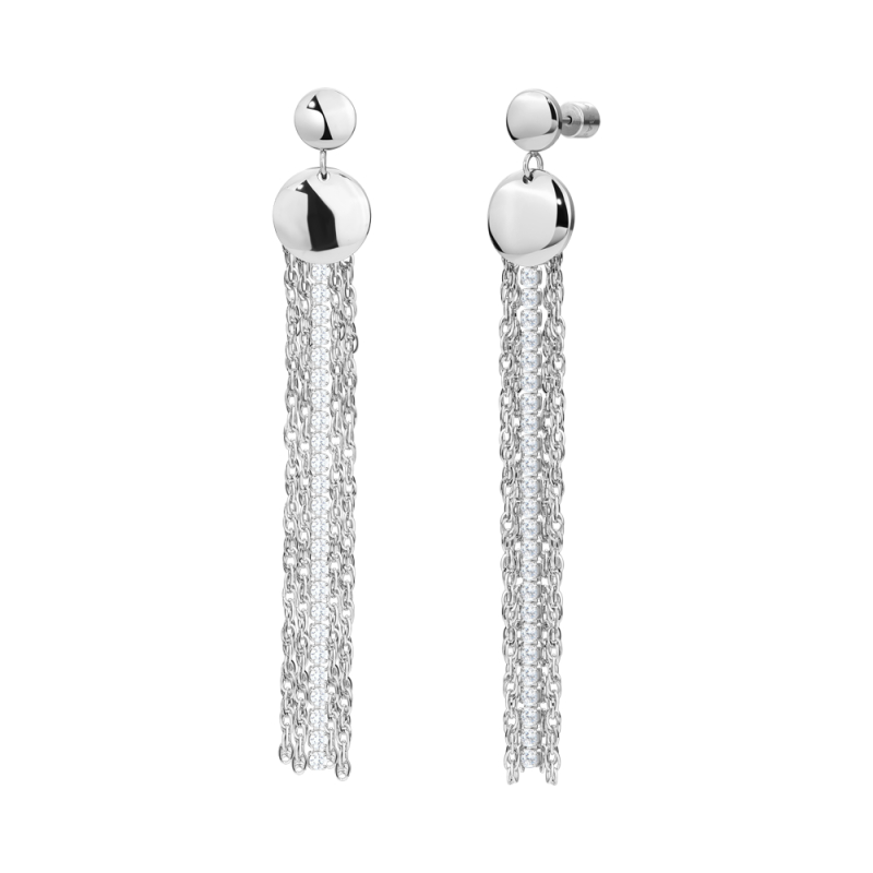 Luca Barra Damenohrringe. Ohrhänger aus Stahl mit weißen Kristallen. Länge: 4 cm, Schraubverschluss. Artikelnummer: OK1670