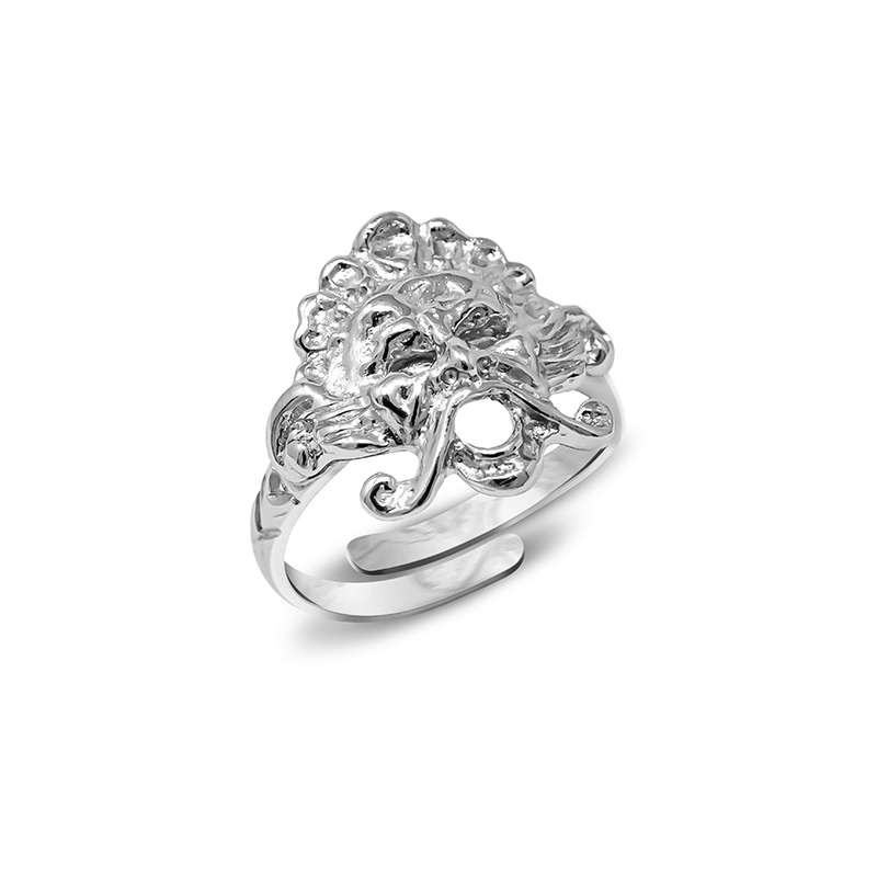 Der im Wachsausschmelzverfahren gefertigte und handgefertigte Ring zeigt eine apotropäische Maske. Im antiken Magna Graecia war der Begriff Apotropäisch im Volksglauben verbreitet, der Masken die magische Funktion zuschrieb, böse Einflüsse abzuwehren, und als Symbol für Schutz und Glück galt.