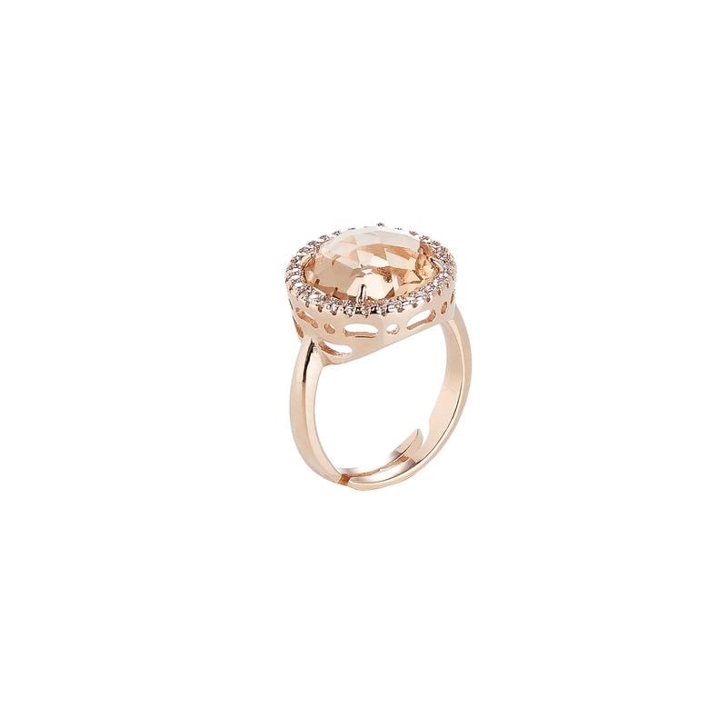 Boccadamo Damenring aus der Sharada-Kollektion. Gold-PVD-Bronzering mit Champagner-Briolett-Kristall und Zirkonia, verstellbare Größe von 13 bis 19. Referenz: XAN080D