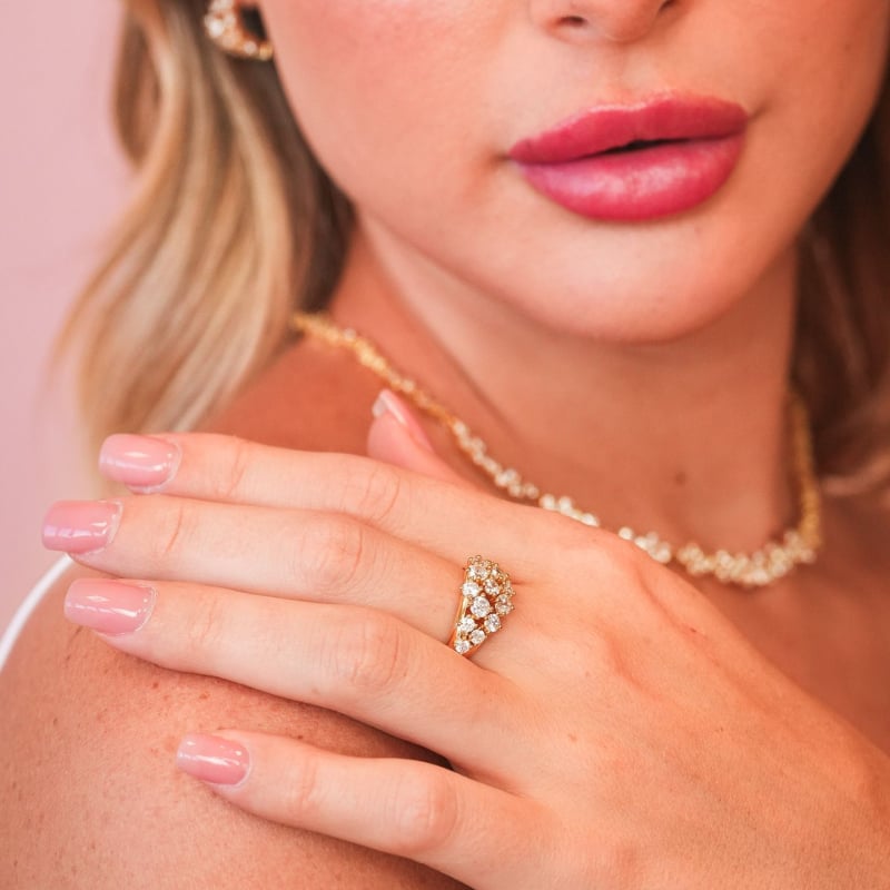Boccadamo Damenring aus der Sophie-Kollektion. 925er Silberring mit goldener PVD-Beschichtung und weißen Zirkoniasteinen, größenverstellbar von 13 bis 19. Referenz: AN541D