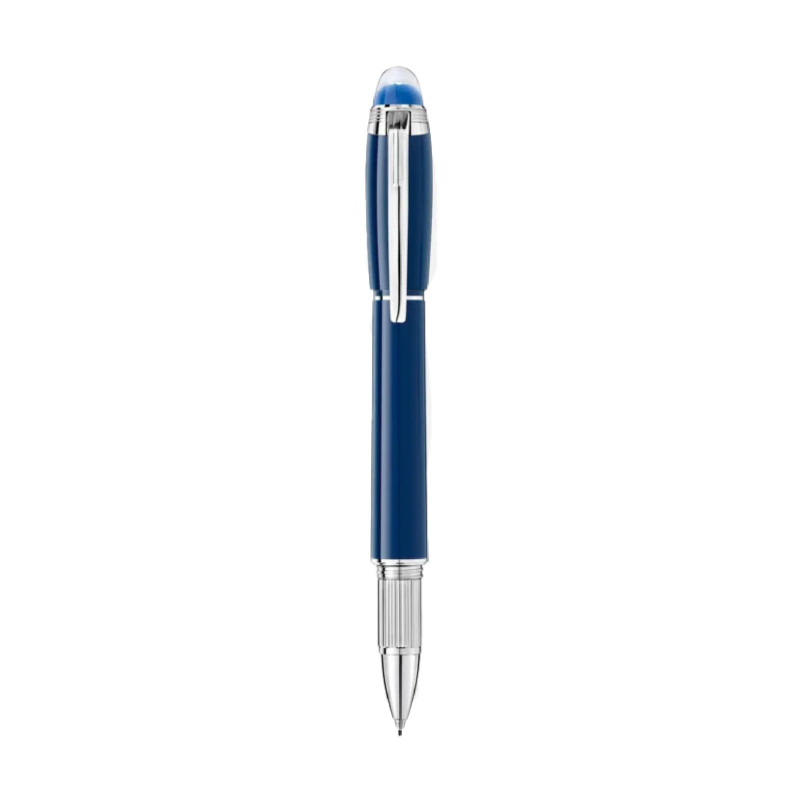 StarWalker Blue Planet erzählt die Geschichte einer Reise durch die Sterne, um den Kosmos und unbekannte Galaxien zu entdecken und an einem der geheimnisvollsten und bedeutendsten Abenteuer der Menschheit teilzunehmen: der Weltraumforschung. Wasser, Symbol des Lebens, ist die wichtigste Inspirationsquelle für die Erforschung der Geheimnisse unseres Planeten. Die exklusive StarWalker-Emblem-Technologie zeigt eine durchscheinende blaue Kuppel mit einem schwebenden Stern an der Spitze, der die Erde symbolisiert, die aus dem Mondhorizont aufsteigt. Die StarWalker Fine Resin besticht durch platinbeschichtete Details sowie einen Korpus und eine Kappe aus blauem Fine Resin. Referenz: MB132440