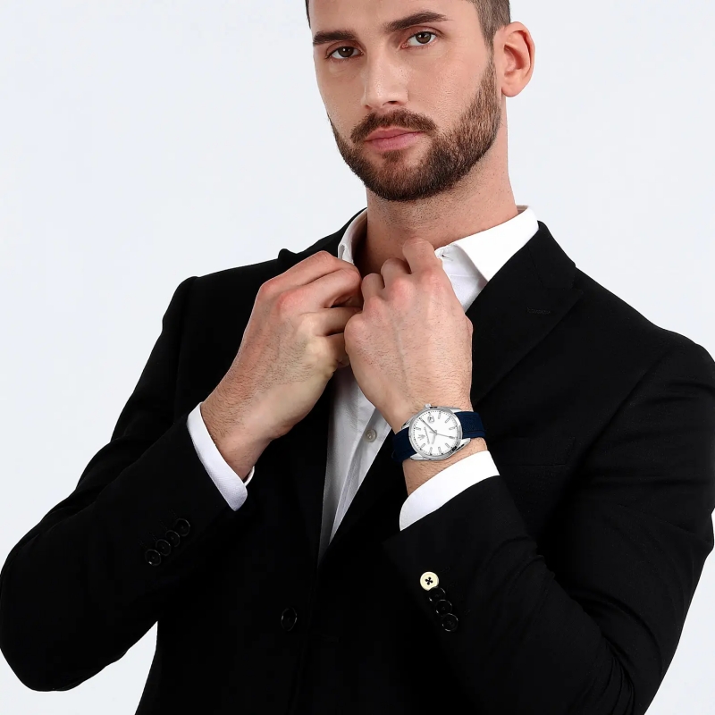 Maserati Herrenuhr aus der Attrazione-Kollektion. Das Uhrwerk ist Quarz mit Datumsfunktion. Das Gehäuse besteht aus Stahl, Durchmesser 43 mm. Das Armband besteht aus blauem Kautschuk. Das Zifferblatt ist weiß. Die Wasserdichtigkeit beträgt 5 atm / 50 Meter. Referenz: R8851151007