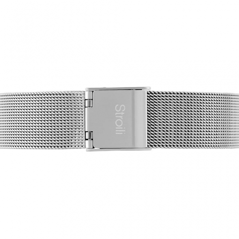 Stroili Damenuhr aus der Little Ibiza-Kollektion. Das Uhrwerk der Uhr ist Quarz. Das Gehäuse besteht aus Stahl, Durchmesser 28 mm. Das Armband besteht aus Stahl. Das Zifferblatt ist silberfarben. Die Wasserdichtigkeit beträgt 3 atm / 30 Meter. Referenz: 1668458