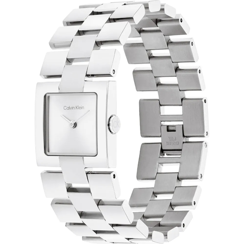 Calvin Klein Damenuhr aus der Meridian-Kollektion. Das Uhrwerk der Uhr ist ein Quarzwerk. Das Gehäuse ist aus Stahl, Durchmesser 22 mm. Das Armband ist aus Stahl. Das Zifferblatt hat eine silberne Farbe. Die Wasserdichtigkeit beträgt 3 atm / 30 Meter. Referenz: 25100088